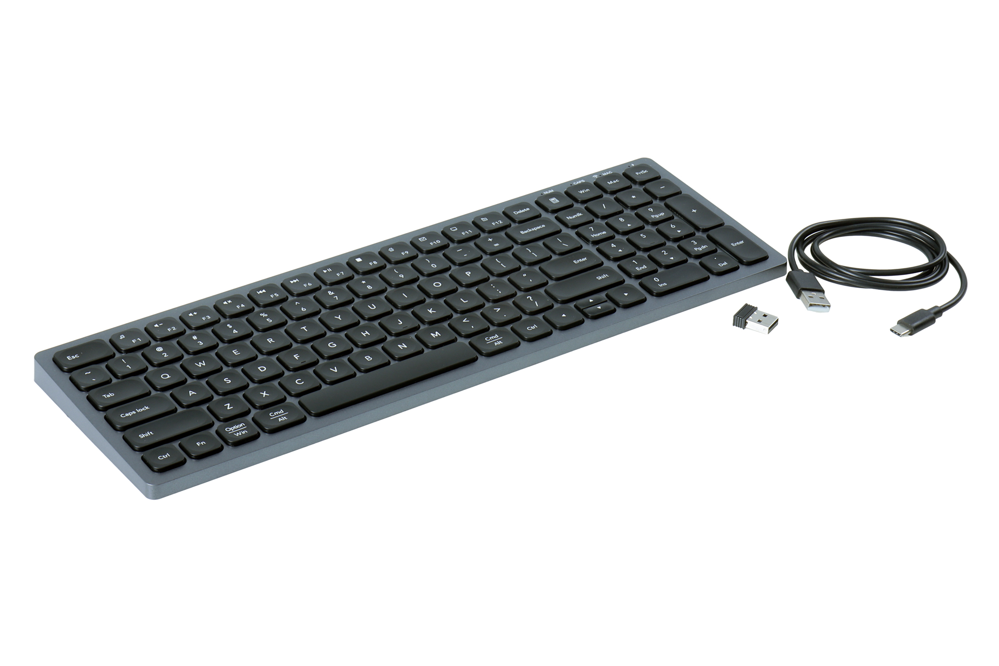 Diese kabellose Tastatur bietet bequeme USB-C-Lademöglichkeiten. Schließen Sie einfach das USB-C-Ladekabel an für eine schnelle und zuverlässige Verbindung. Selbst während des Ladens können Sie weiterhin tippen, ohne Unterbrechungen aufgrund leerer Batterien. Die Tastatur ist stets einsatzbereit.