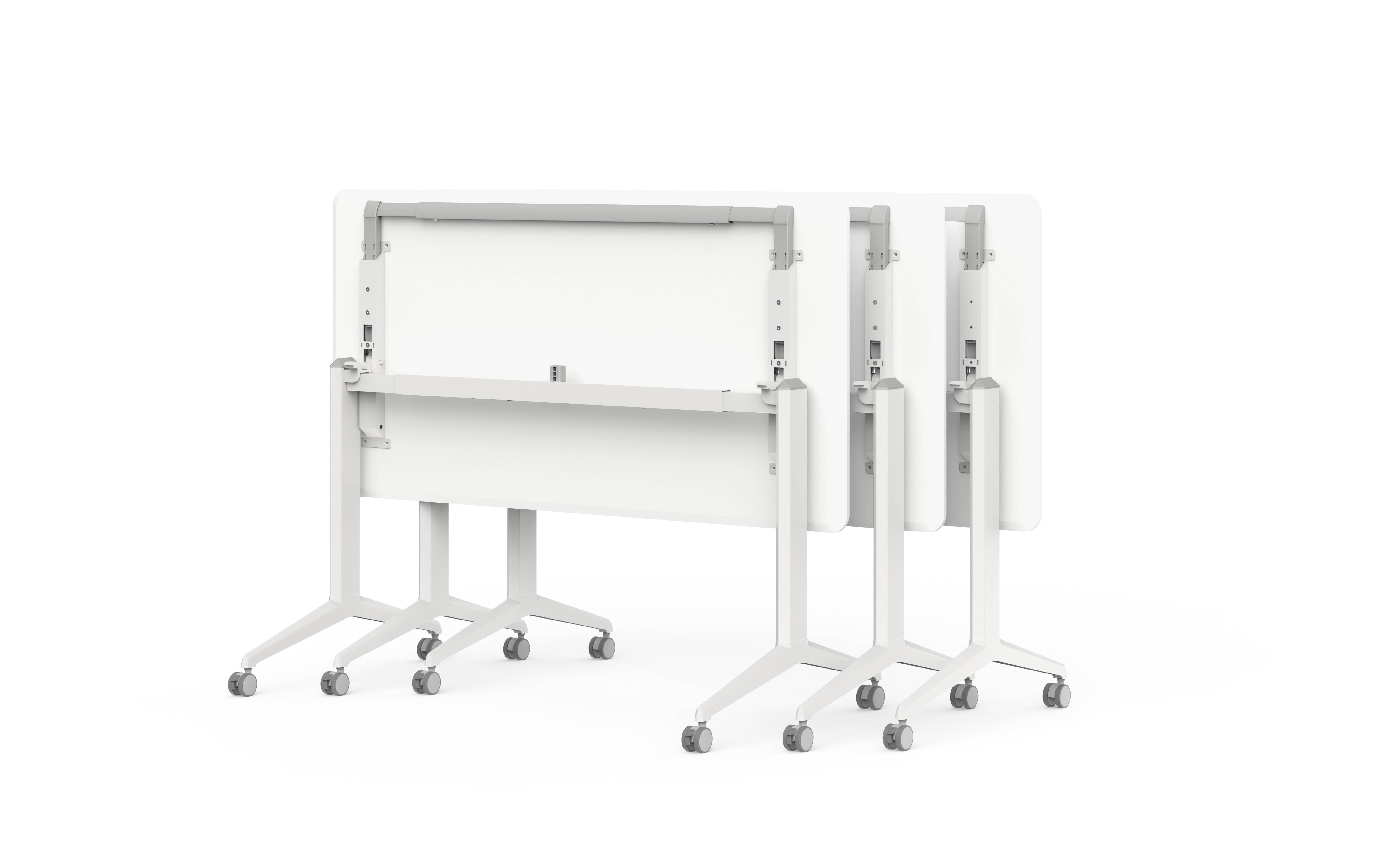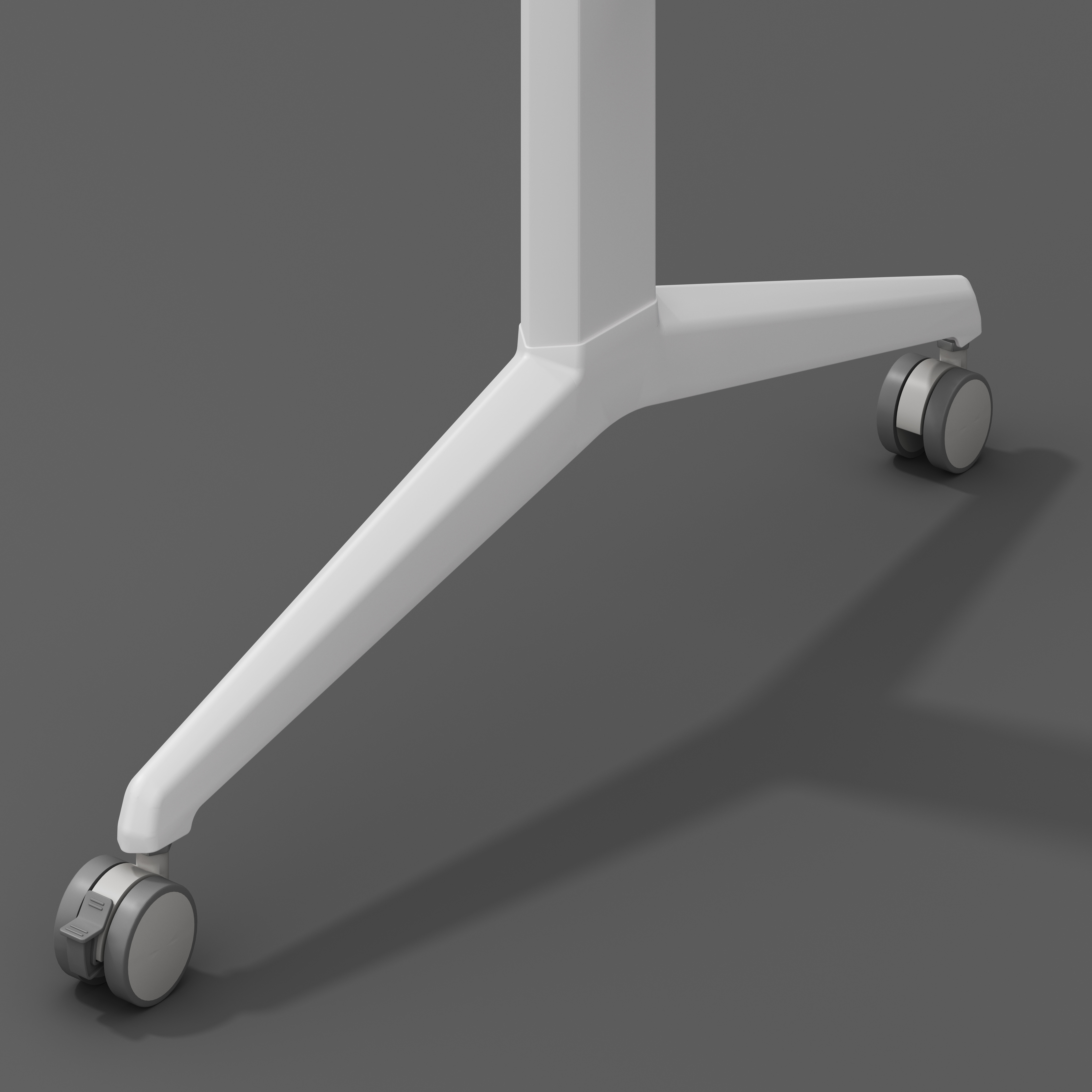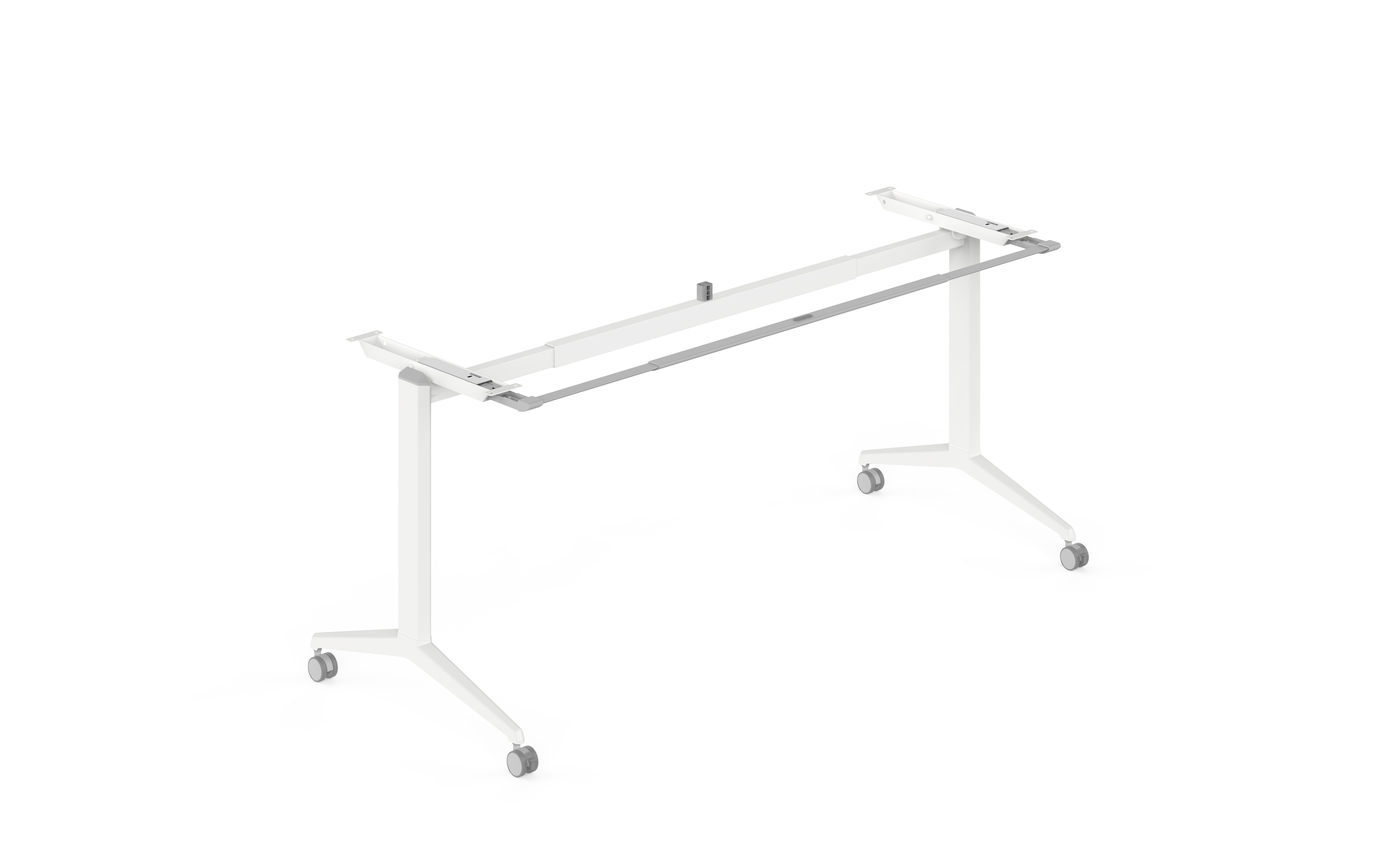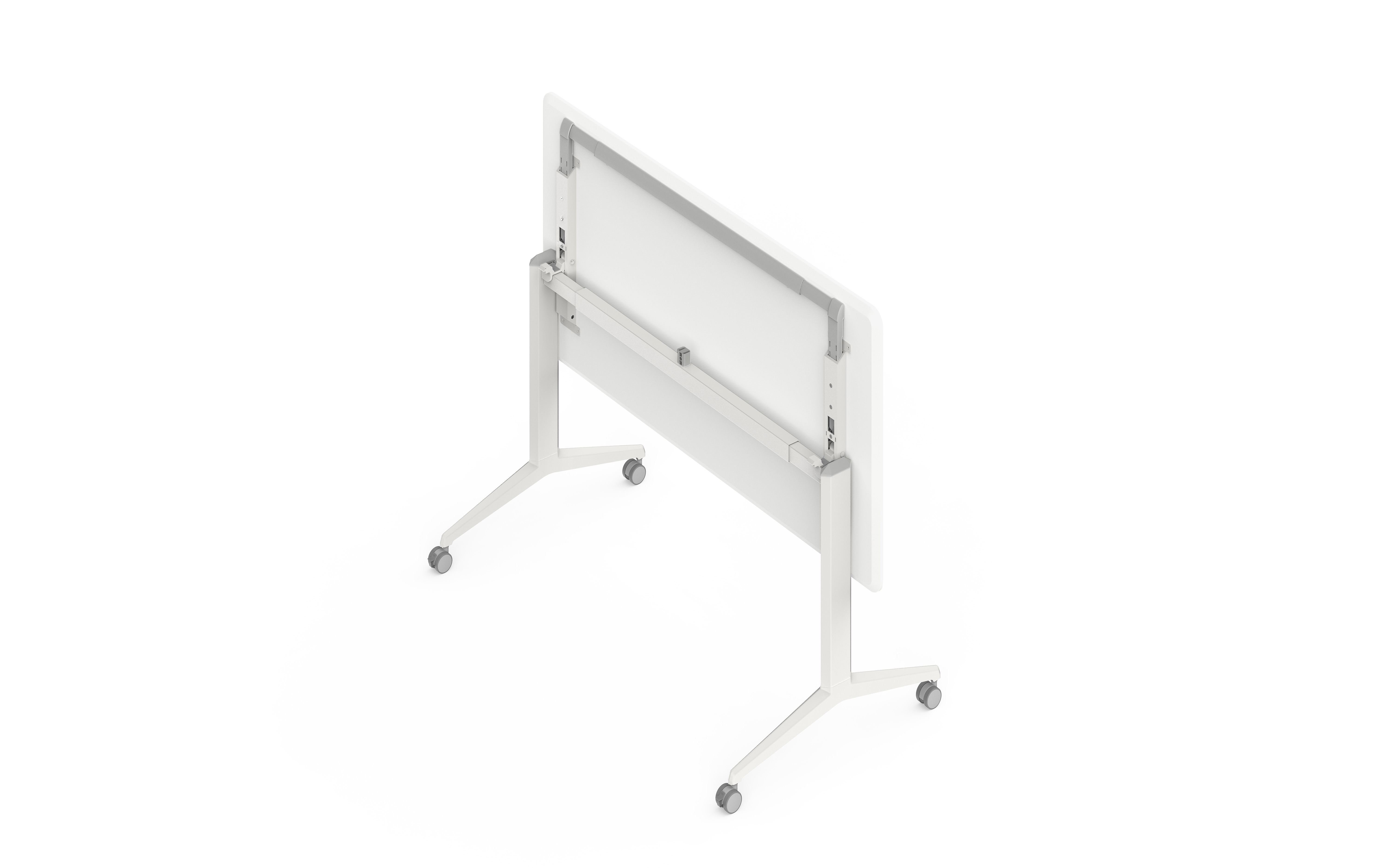 Das Gestell ist mit einem teleskopischen Profil ausgestattet und für Tischplatten von 1200 bis 1800 mm Breite geeignet (Tischplatte nicht enthalten). Dank des cleveren Kippmechanismus kann die Platte vertikal geklappt werden, was bei Lagerung und Transport Platz spart. Die integrierten Lenkrollen sorgen für maximale Mobilität, während der zentrale Bediengriff das Kippen besonders einfach macht.