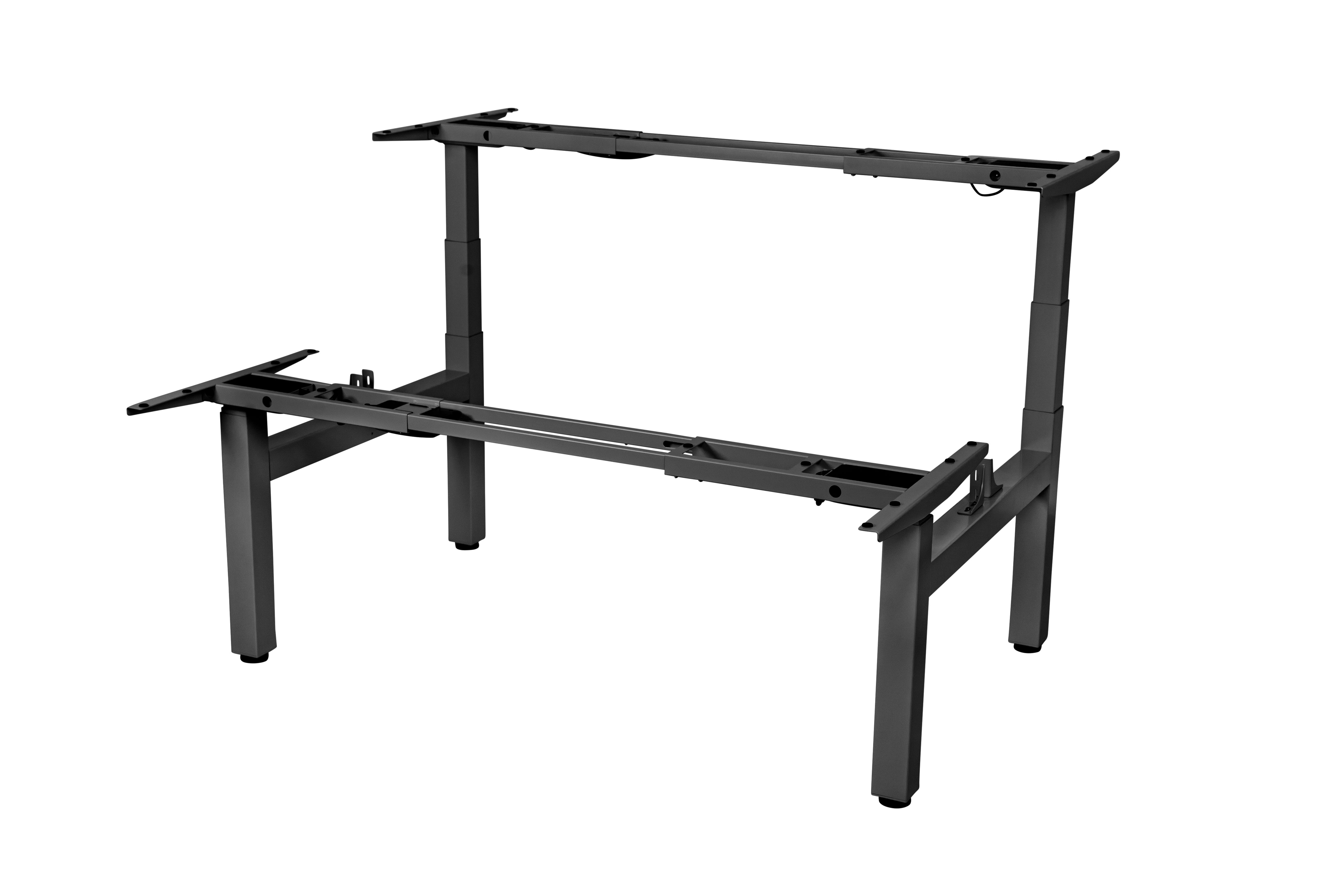 Mit dem Ergofy DUO Sitz-Steh-Gestell haben Sie 2 miteinander verbundene Arbeitsplätze. Das Gestell verfügt über ein 2-motoriges Tischgestell mit 3 Säulen und einer Höhenverstellung zwischen 630 und 1280 mm. Dadurch kann jeder mit einer Körpergröße zwischen 150 und 200 cm sowohl im Stehen als auch im Sitzen in seiner optimalen Arbeitshöhe arbeiten. Dank der 2 leistungsstarken Motoren lässt sich das Gestell flüsterleise verstellen. Durch das 3-Stufen-Fuß ist der Schreibtisch auch bei maximaler Höhe sehr stabil.